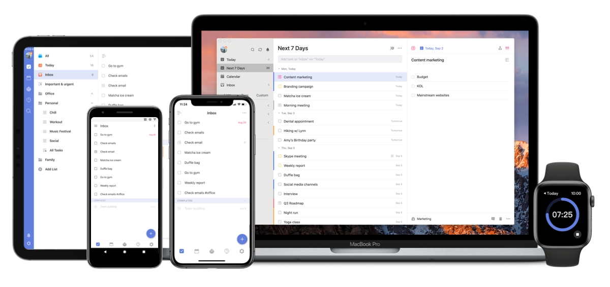 The reason why Ticktick works the best here is because you can add deadlines, schedule tasks on calendar and even have shared todo lists within your team. Also, it works on all devices (In case you're an Apple watch person).